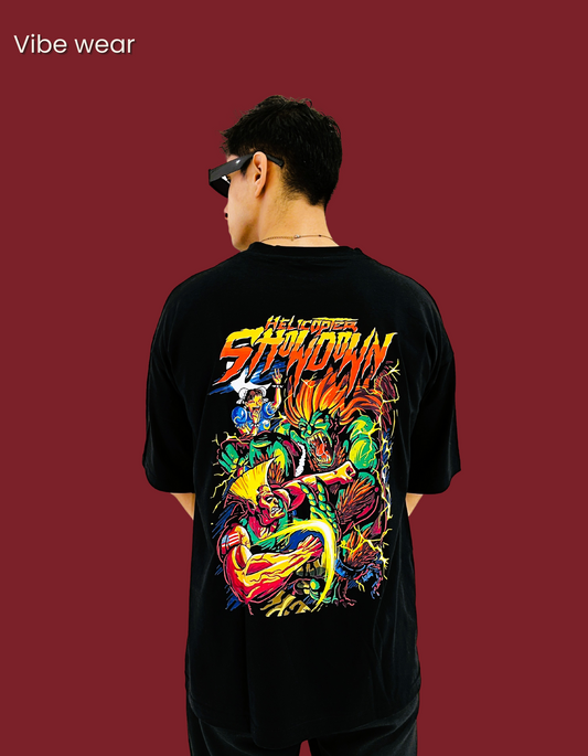 "Helicopter Showdown: Vintage Arcade Battle Graphic Tee" Oversized T-shirt
